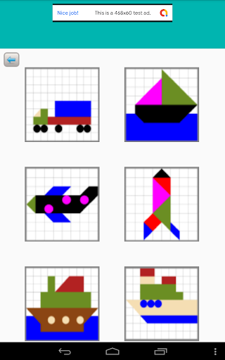 The first part : Reproduce pictures consists of reproducing images that are divided into 4 categories : Transport, Home, Animals and Mosaics.