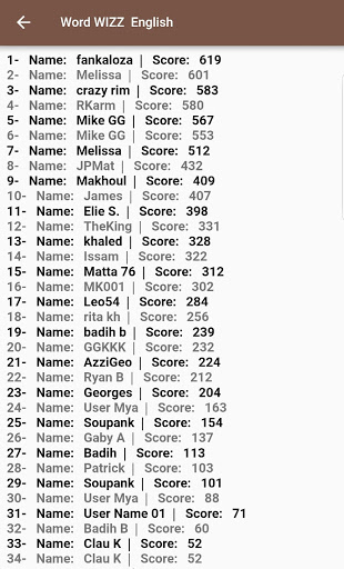 - After certain number of correct words the displayed grid will be reshuffled for better chance.
