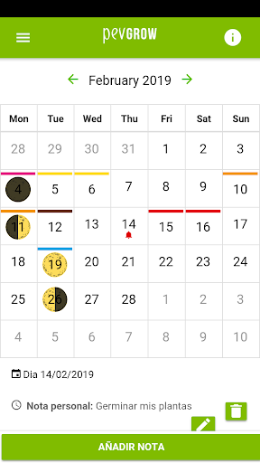 En esta nueva versión, hemos incorporado la posibilidad de añadir tus notas personalizadas en cada día, de forma que puedas guardarte las notas que necesites para tus plantas y tus cultivos a modo de agenda y recordatorios.