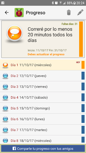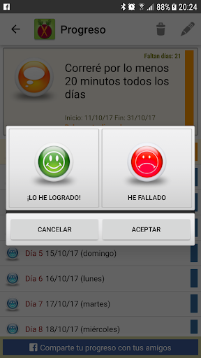* compartir el progreso de tu reto con tus amigos en Facebook