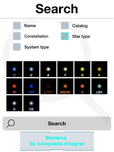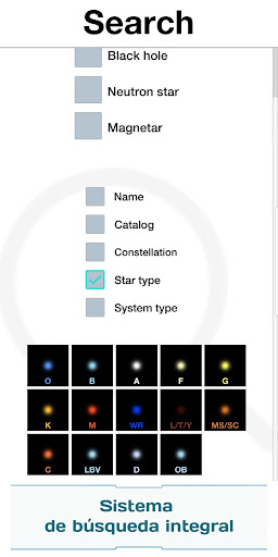 ★ Busque estrellas por constelación, nombre, catálogo o tipo de estrella (color)