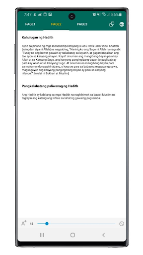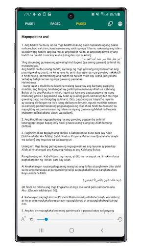 actualmente esta aplicación Contiene dos traducciones en lengua Tagalog. El Shiekh Abu Haoen y la traducción de Shiekh Muhammad Macaraya Bani Mobility y Allah.