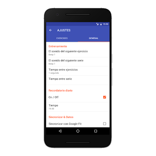 - Alarma de recordatorio diario para que no se pierda un entrenamiento