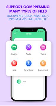 Admite comprimir y descomprimir formatos de documentos como Docx, xlsx, ppt, ..; Imagen: PNG, JPG, ...; Vídeo: Mp4, FLV, AVI, ...; Audio: MP3, AAC, .. etc.