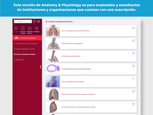 Esta versión de Anatomy & Physiology es para empleados y estudiantes de instituciones y organizaciones que cuentan con una suscripción. Si no está seguro de si esto aplica en su caso, le recomendamos que busque Anatomy & Physiology de Visible Body para comprar la aplicación.