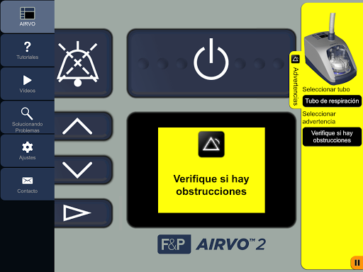Ésta app simula al usuario de la interfaz para AIRVO2 de Fisher & Paykel Healthcare para ayudarle a entender cómo funciona la última versión de AIRVO