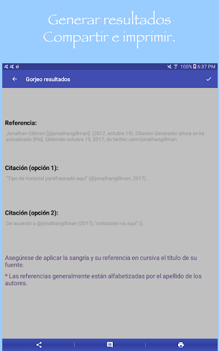 * Incluye 5 citas en el texto y generadores de referencias. Admite fuentes de libros, periódicos, software, Twitter y sitios web.