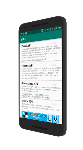 This app help developer to discover new apis to use like different types of apis from google and yahoo and more other apis