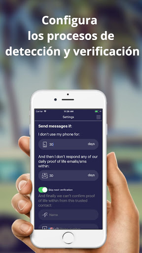 AfterLife monitorea y detecta sí no has usado tu teléfono por un tiempo. Esta es la primera señal de que algo no está bien. Luego vamos a: