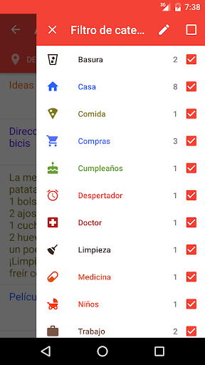 • Haz tu propia categoría o elige una de las 30 predefinidas, para filtrar así contenido y asignar iconos, colores, tonos de llamada y demás propiedades a las notas y tareas rápidamente.