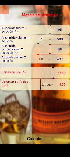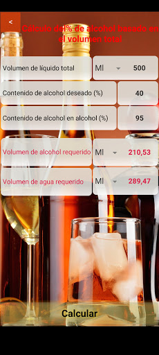 3) Cálculo de la concentración de una solución que contiene alcohol en función del volumen (Sabiendo el volumen que desea obtener, calculamos la cantidad de una solución que contiene alcohol y agua).