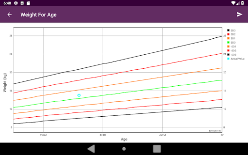 Basada en los estándares de la OMS (Organización Mundial de la Salud), fácilmente ubica el peso, talla, y otros indicadores en comparación a la media de la OMS.