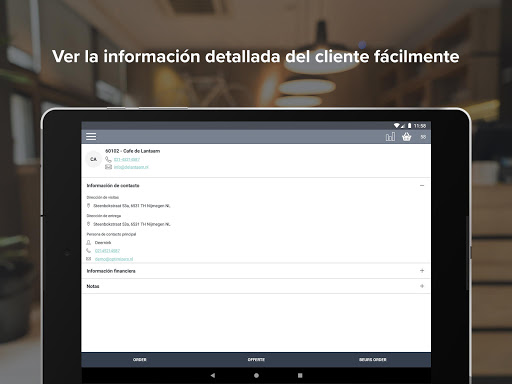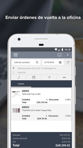 App4Sales es la aplicación perfecta para tus agentes de venta para rápida formulación de pedidos, usada por miles de agentes de venta. La integración con tu sistema ERP hace posible acceder a la base de datos completa de clientes y registrar nuevos clientes. Los agentes solo tienen acceso a sus propios clientes con sus credenciales de inicio de sesión personales. Busca en el catálogo digital y usa el lookbook para darle a tus clientes una buena impresión de todos tus artículos. Añade artículos a la orden, carga listas de precio especificas del cliente y deja que los clientes firmen la orden en tu dispositivo Android. Después de enviar la orden, será creada automáticamente en tu sistema ERP. Ingresar manualmente las órdenes en tu sistema ERP no será necesario con App4Sales.