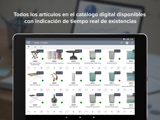• Ver toda la información de acciones, precios, grupos de artículos, información histórica desde tu sistema ERP
