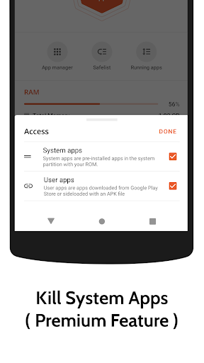 Esta aplicación puede cerrar todas las aplicaciones que se ejecutan en segundo plano, incluidas las aplicaciones de sistemas y las aplicaciones de usuario.