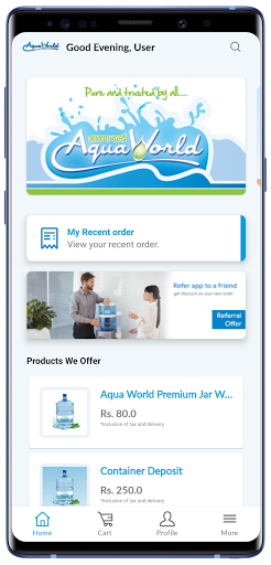 Aquaworld Water App es una aplicación de pedido en línea que proporciona una amplia gama de productos relacionados con el suministro de agua.
