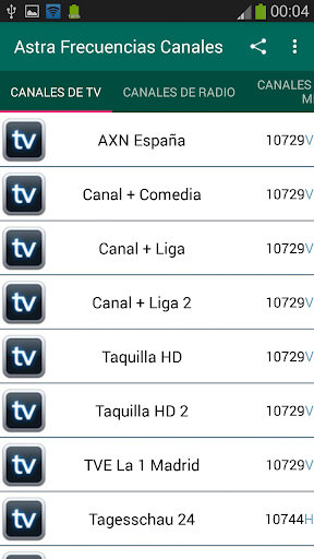 Todas las frecuencias de los siguientes satélites en la misma órbita 19,2 ° Este: Astra 1KR / Astra 1L / Astra 1M / Astra 1N.