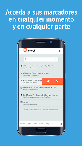 Atavi Bookmarks es una nueva aplicación para móviles gratuita y muy cómoda que almacena y sincroniza de forma segura sus marcadores web en cualquier momento y en cualquier lugar. No importa si utiliza Windows en casa y Mac OS en el trabajo, o si cambia a menudo entre su portátil, tableta y smartphone; usted podrá acceder fácilmente a todos sus marcadores desde cualquier lugar, dispositivo y sistema operativo.