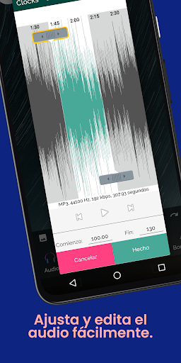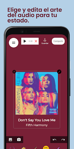 Status Maker le proporciona funciones de edición de audio sofisticadas y fáciles de usar que facilitan la creación de su estado. Admite muchos formatos de audio populares como MP3, AMR, WAV y M4A. Incluye un recortador de audio y un visualizador de audio incorporado con cinco niveles de zoom diferentes que le permiten elegir cualquier parte de su audio para establecer su estado.
