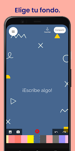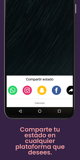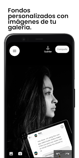 Incluye varios fondos nítidos, brillantes y coloridos para su estado. También le permite crear un estado utilizando sus propias imágenes personalizadas de la galería o la cámara como fondo.