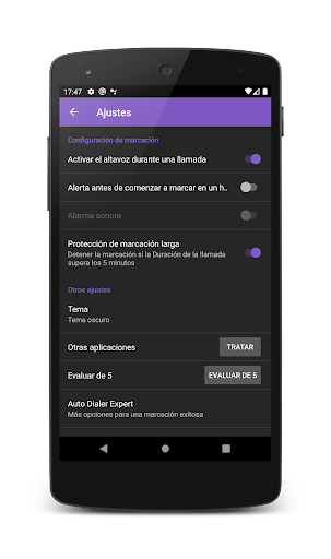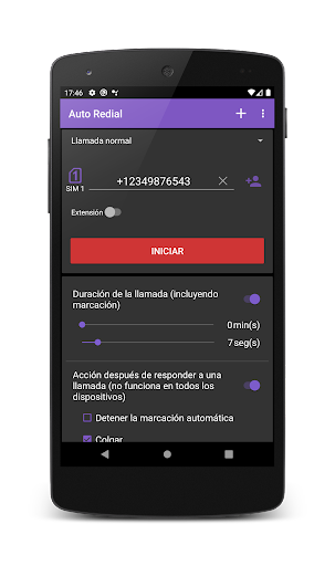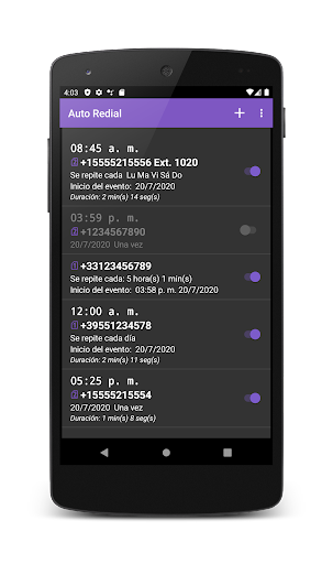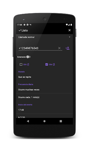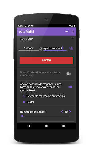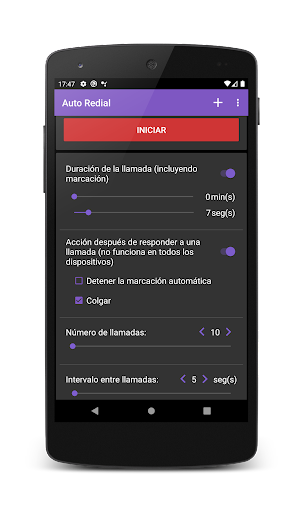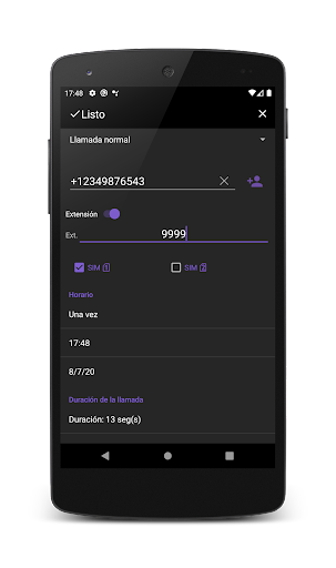 La aplicación tiene soporte para llamadas programadas. Puede especificar una programación para volver a marcar automáticamente con diferentes parámetros.