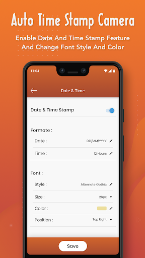 Con cámara automática Cámara de sello - Agregar en las fotos y videos Bloquea todos sus momentos con la marca de fecha y hora y hazlas duraderas.