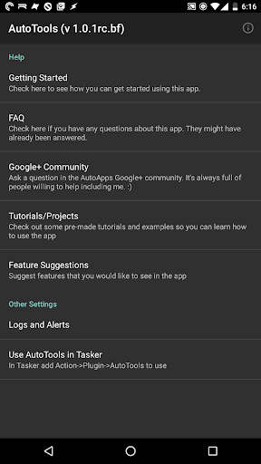 Autotools se expande constantemente con nuevas características.¡Cualquier característica que no tenga sentido en un complemento independiente, pero que falte en Tasker, se puede agregar aquí!