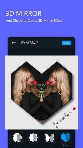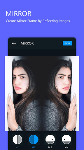 Múltiples efectos de fotos de espejo Puede crear aquí en segundos. Cree diferentes tipos de reflexión en sus fotos y aplique efectos de espejo como Lomo, boceto, aceite para el buen aspecto. Agregue formas múltiples a su foto y haga impresionantes imágenes espejo marco de fotos. Además, puede aplicar filtros de fotos, pegatinas, meme y escribir las citas en las fotos del espejo para hacerlas hermosas.