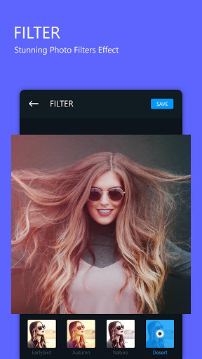 Aplique los últimos filtros de fotos y le dé la mejor apariencia de su foto. La amplia gama de nuevos filtros de fotos están disponibles en Editador de Fotos. Usando diferentes efectos de filtro de fotos, puede configurar la corrección de balance de color rápido para mejorar la precisión de color.