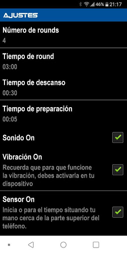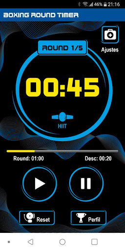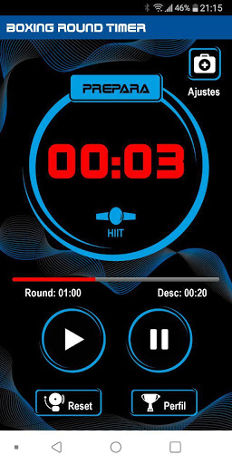 Boxing Round Timer es un excelente contador para entrenamientos de todo tipo de deportes, ya que te permite personalizar una serie de intervalos estableciendo su número, el tiempo de preparación, el tiempo de trabajo y el tiempo de descanso.