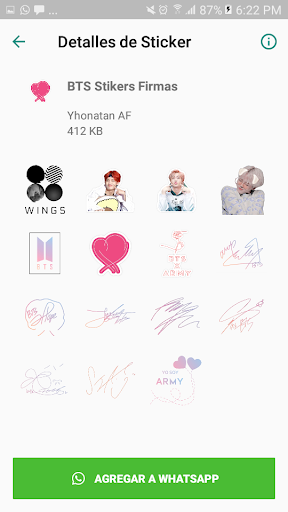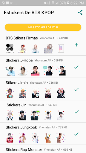 BTS Stickers KPop for whatsapp es una aplicación de adhesivos para redes sociales que le facilita el envío de adhesivos a sus amigos, familiares y otros.