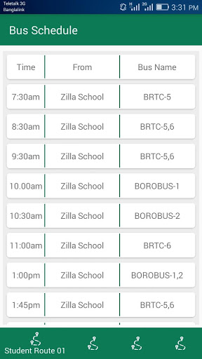 • The bus schedules for all roots are arranged in a simulation type that helps a user to find out the bus from bus stop.