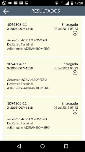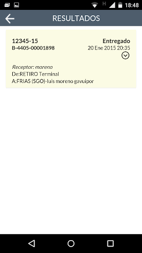 - Detalle del historial de eventos y estadíos por los que transitó el paquete enviado