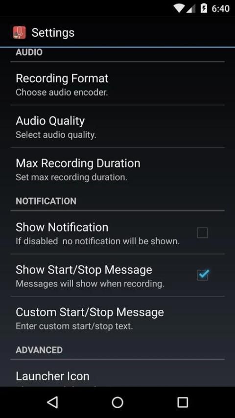 • Disable Notification icon so there is no screen indication that audio is recording.