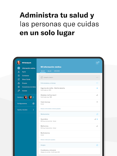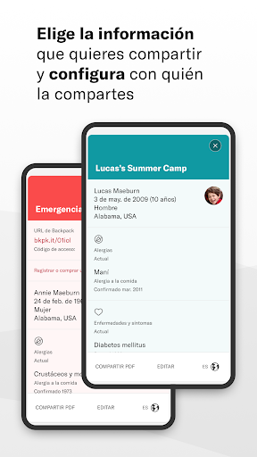 • Niños, padres mayores, cualquier persona cuya información necesites tener a mano, Backpack Health te permite guardarla toda en un solo sitio