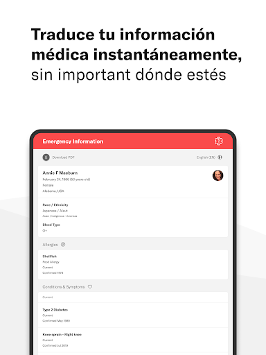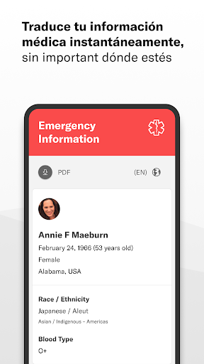 • Traduce instantáneamente tu información médica a varios idiomas