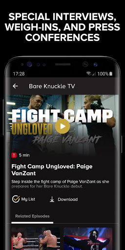 Además de luchas en vivo y archivadas que también obtienes: entrevistas con combatientes, conferencias de prensa archivadas , pesajes, comentarios, probabilidades de apuestas actuales (solo visibles), perfiles de combate, peleas de Barebnuckle en todo el mundo, ¡y mucho más!