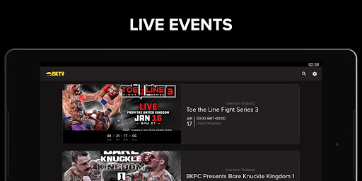 La aplicación donde puede transmitir todo el contenido de Bareknuckle (BKFC) en vivo o bajo demanda. ¡La lucha de Barebnuckle está aquí y legal! ¡BKTV lleva el deporte de combate más emocionante, rápido y de combate de bombeo de corazón en la historia. Los más grandes peleas de Bareknuckle Live Live, pasadas, los perfiles de combate y mucho más por solo $ 5.99 por mes o $ 49.99 por año. No hay precios más exorbitantes de PPV. Transmite todo en vivo en su teléfono Android, TV Android, Tableta Android, Amazon Fire TV, ROKU, Google Chromecast a su TV inteligente, ¡o en su computadora en el sitio web de BKFC!