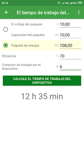 Calculadora del tiempo de trabajo estimado de un dispositivo alimentado por una batería