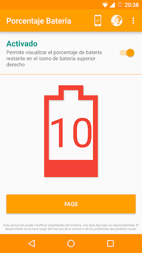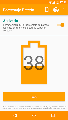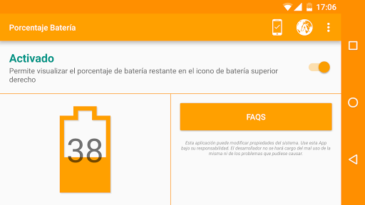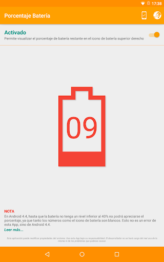 - Aunque desinstales la aplicación, el porcentaje de batería seguirá estando visible. Para eliminarlo, sólo reinstala la app (si ya la habías desinstalado) y desactívalo.