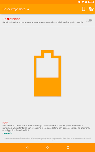 - En Android 4.4 el porcentaje de batería es visible sólo cuando la batería restante es inferior al 40% (debido a que las cifras son blancas y el fondo también es blanco).