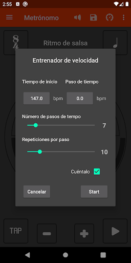 ✓ Botón de más y menos para intervalo de tempo → para tener un control rápido del tempo