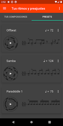 • Puedes ver los ritmos y seleccionarlos fácilmente