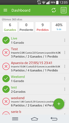 BetStatus es la aplicación para todos los apostantes que te permite insertar todos los partidos con su correspondiente apuesta de tu hoja y poder controlar el estado en tiempo real.