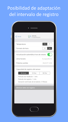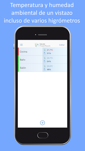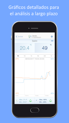 Con el termohigrómetro Beurer, en combinación con la aplicación Beurer FreshRoom, controlará rápidamente el aire entre sus cuatro paredes. Con la práctica indicación en color, el indicador del aire ambiente le facilita directamente la información de si la temperatura y la humedad ambiental relativa están dentro de los valores límite definidos por usted.