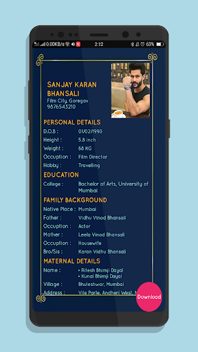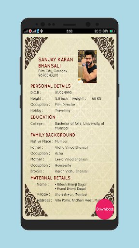 Biodata Maker is an Android App. By using this app, you can create nice and attractive Biodata for your marriage.