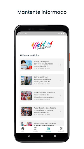 Bienvenido a la aplicación Unidos Contra el Covid #UnidosContraElCovid, en la que encontrarás información oficial referente a los síntomas, la prevención y la vacunación contra el virus COVID-19 en Bolivia.