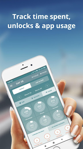 Monitorización del uso para estudiar sus patrones de uso del teléfono, con un método rápido para hacer un seguimiento de sus progresos en un plazo de 60 días. Puede ver las estadísticas de uso para sus aplicaciones más utilizadas con el fin de clarificar la forma en que realmente está usando su teléfono.
