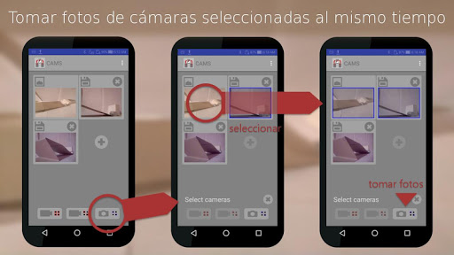 • Tomar fotos de cáms de celular, previamente seleccionadas, simultáneamente;