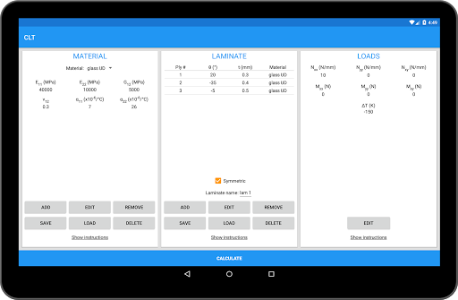 Aunque las instrucciones se administran a lo largo de la aplicación, se recomienda Faimilación con la teoría de la laminación clásica antes de usar CLT, ya que no se proporciona los antecedentes teóricos.